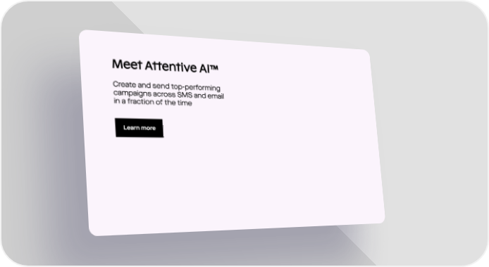 Attentive Platform Page 5 Video Player is loading.Play VideoPlaySkip BackwardSkip ForwardMuteCurrent Time 0:00/Duration -:-Loaded: 0%0:00Stream Type LIVESeek to live, currently behind liveLIVERemaining Time --:- 1xPlayback RateChaptersChaptersDescriptionsdescriptions off, selectedCaptionscaptions settings, opens captions settings dialogcaptions off, selectedAudio TrackPicture-in-PictureFullscreenThis is a modal window.The media could not be loaded, either because the server or network failed or because the format is not supported.Beginning of dialog window. Escape will cancel and close the window.TextColorWhiteBlackRedGreenBlueYellowMagentaCyanOpacityOpaqueSemi-TransparentText BackgroundColorBlackWhiteRedGreenBlueYellowMagentaCyanOpacityOpaqueSemi-TransparentTransparentCaption Area BackgroundColorBlackWhiteRedGreenBlueYellowMagentaCyanOpacityTransparentSemi-TransparentOpaqueFont Size50%75%100%125%150%175%200%300%400%Text Edge StyleNoneRaisedDepressedUniformDrop shadowFont FamilyProportional Sans-SerifMonospace Sans-SerifProportional SerifMonospace SerifCasualScriptSmall CapsResetDoneClose Modal DialogEnd of dialog window.Opens Fullscreen